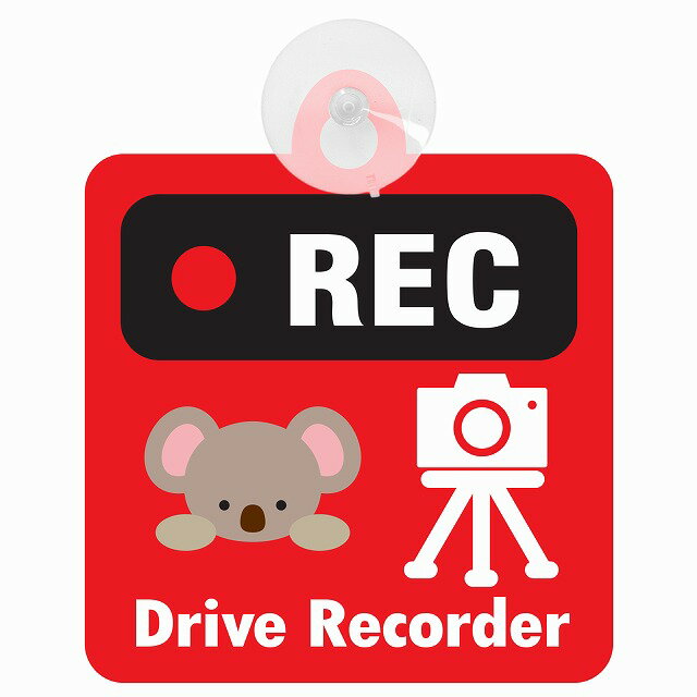 セーフティサイン アニマル こあら レッド REC Drive Recorder ドライブレコーダー 録画 車内用 後方 吸盤タイプ 煽り運転対策 収れん火災防止タイプ