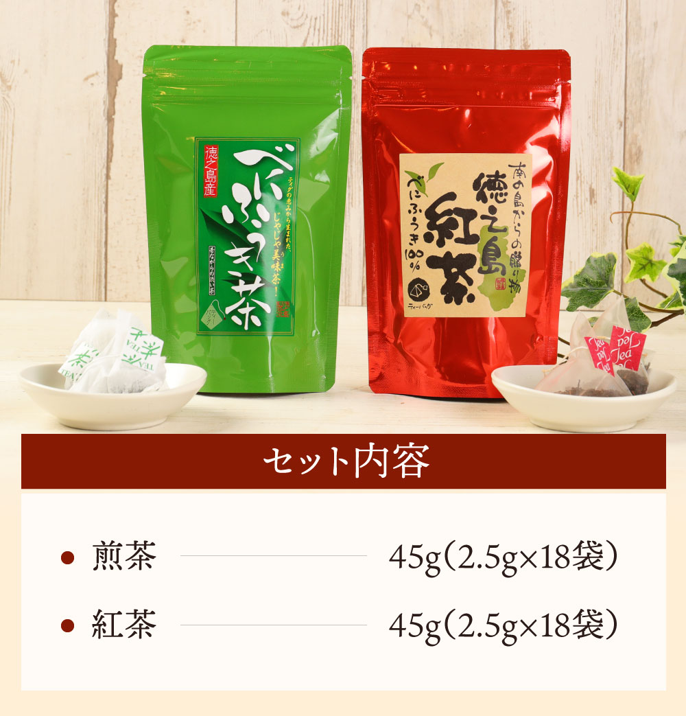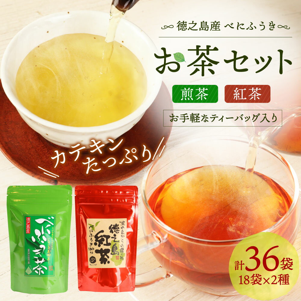 【ふるさと納税】徳之島産 べにふうき お茶セット 2種 (煎茶・紅茶 各45g) 合計36袋 お茶 紅茶 緑茶 飲料 ティーバッグ ベニフウキ カテキン 鹿児島県産 天城町産 国産 送料無料