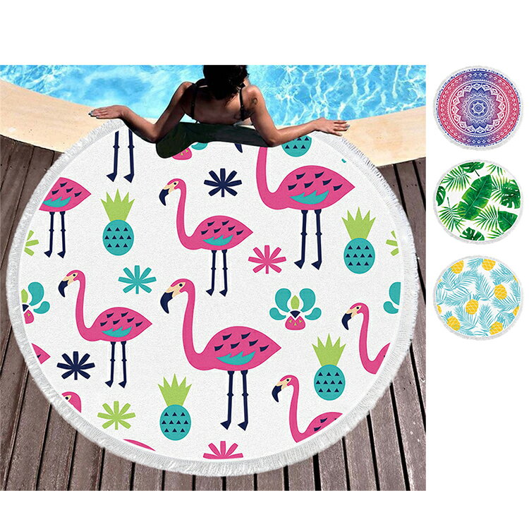 マルチマット レジャーシート 大判 丸 サークル ポリエステル タオル 海 アウトドア 山 川 遠足 レジャー 敷物 パイナップル 葉 葉っぱ 鳥 フラミンゴ 白 緑 ピンク 黄色 プールサイド キャンプ 洗える BBQ 折りたたみ ソファ リビング バーベキュー 釣り テント 寝室