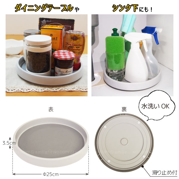 くるっトレー FP-377 / 回転 トレイ 回る ラック ターン式 円型 円形 冷蔵庫 庫内 整理 収納 リビング ダイニング テーブル シンク下 スパイス 調味料 掃除道具 グレー シンプル