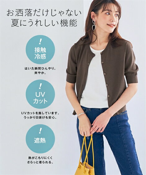 薄手でサラッと風通しよく爽やかなひんやりニットカーディガン。